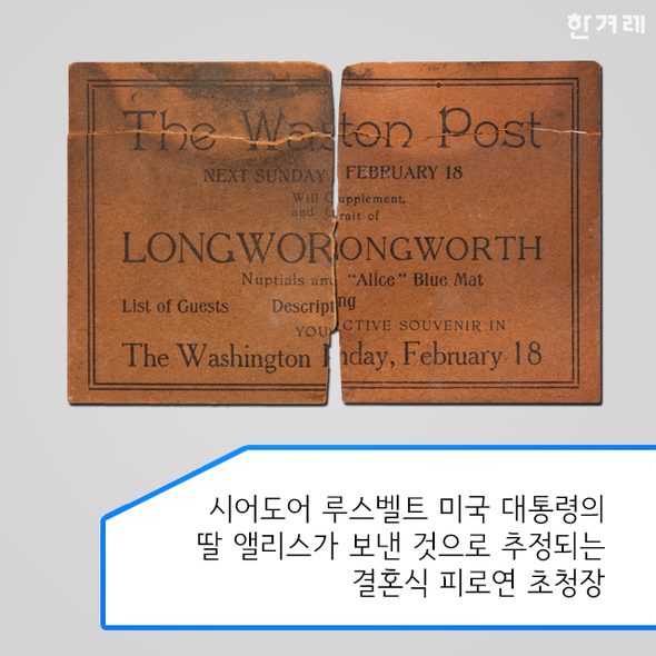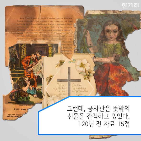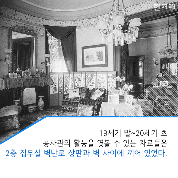 미국 워싱턴의 주미 대한제국 공사관 건물 복원 과정에서 120년 전 공사관의 활동을 엿볼 수 있는 ‘타임캡슐’이 발견됐습니다. 시어도어 루스벨트 미국 대통령의 딸 앨리스의 결혼식 초청장 등 15점이 벽난로 상판과 벽 사이에 끼어 있던 것입니다. 그런데 120년 만에 모습을 드러낸 자료 뒤에는 더 기가 막힌 주미공사관의 사연이 숨어있습니다.
