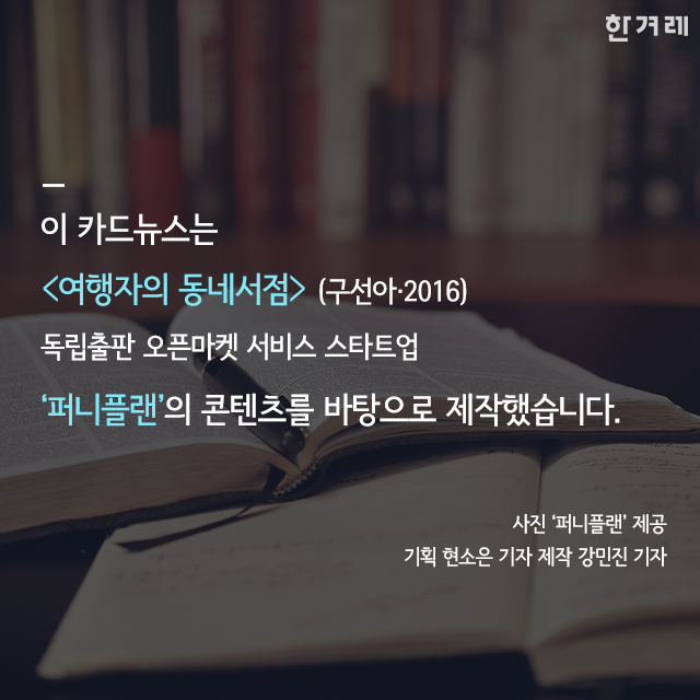 어느새 동네 특유의 공기를 담은 작은 책방은 사라지고, 일종의 프랜차이즈 서점이 들어서기 시작했습니다. 하지만 아직도 서울 곳곳엔 동네 책방이 남아있습니다. 일상 속 고요한 휴가를 원하는 분, 절판된 책을 찾는 재미를 탐하는 분들을 위해 동네 책방 6곳을 엄선했습니다.